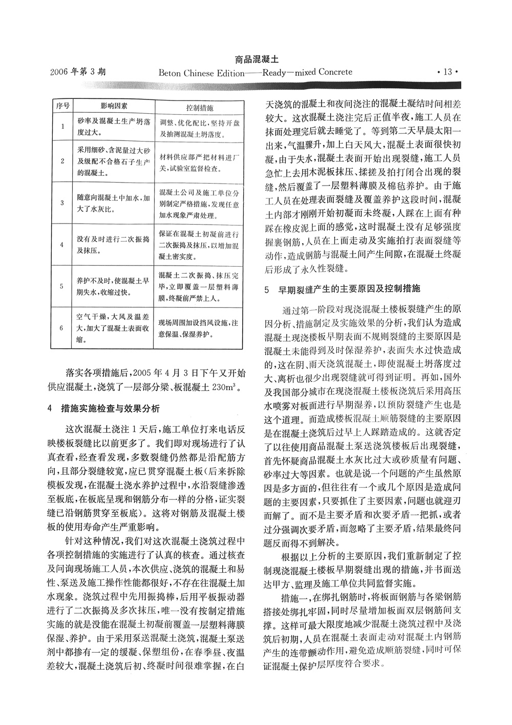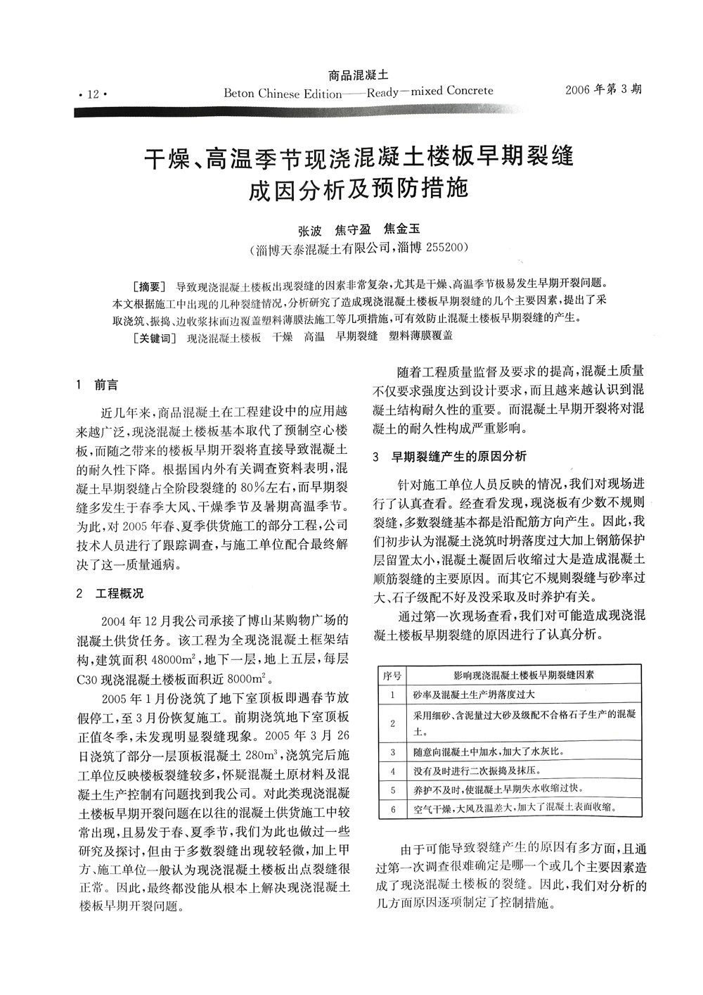 干燥、高温季节现浇马博网投楼板早期裂缝成因分析及预防措施《商品砼》